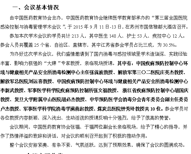 关于“第三届全国医院感染控制与消毒管理学术会议”的纪要