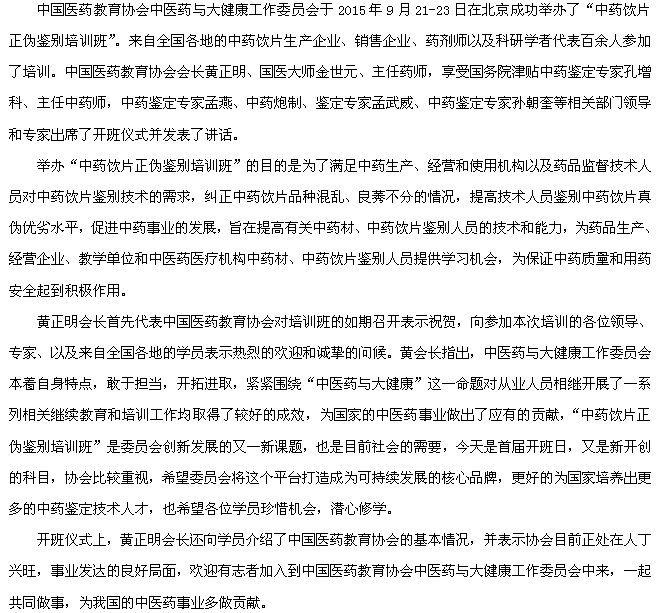 中药饮片正伪鉴别培训班在京成功举办